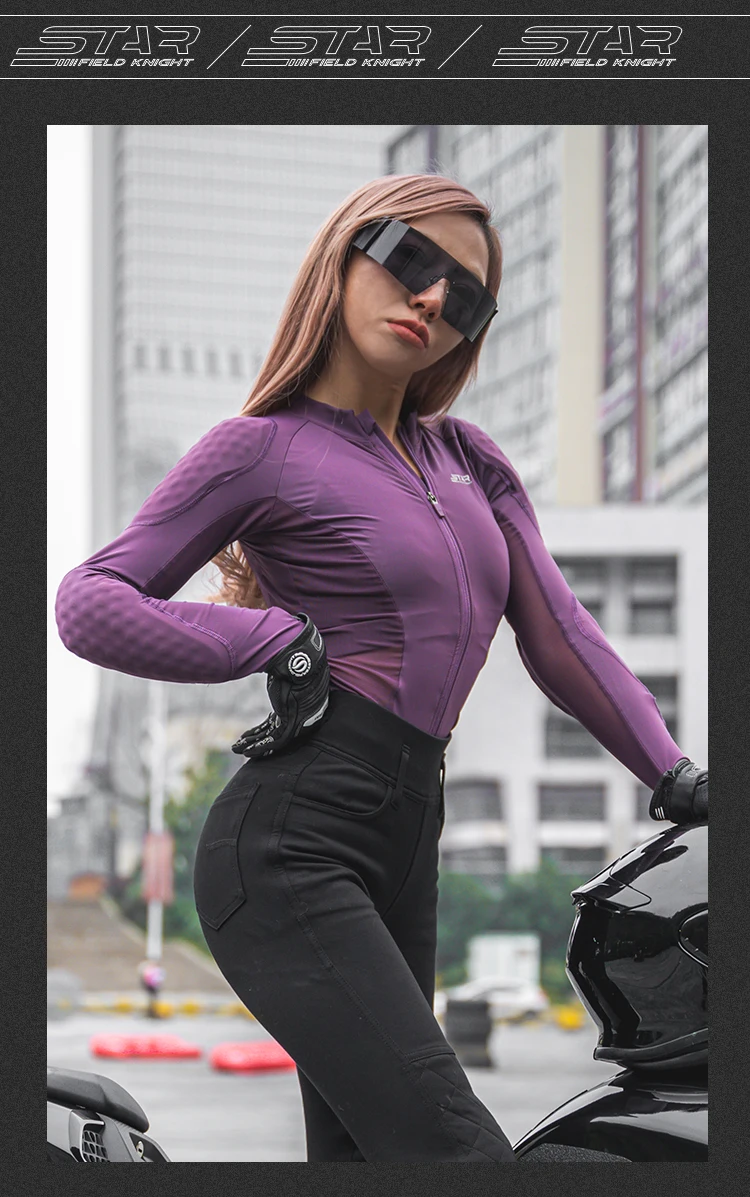 Motorcycle Riding Armor Jacket Slim Fit Purple Women's Cycling Clothes Summer Mesh Breathable With Protective Gears